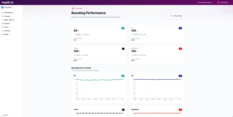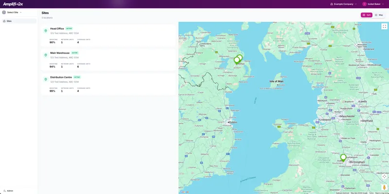 The ‘Floor Plans’ section shows your building layout and where each individual piece of kit is placed. It’s easy to see at a glance how well the system’s working in different parts of your site. Therefore, on the rare occasion that something happens to go down, you'll be able to locate exactly where that piece of equipment is.